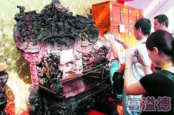 据新华社消息,正在南宁举行的中国—东盟博览会上,富溢德家具一套标价为“8000万元”人民币的“天价家具”引起与会者的很大关注。