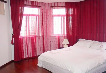 红色窗纱奠定了整个房间的主色调,丝薄的纱帘轻轻飘动,散发出浓郁的浪漫气息……